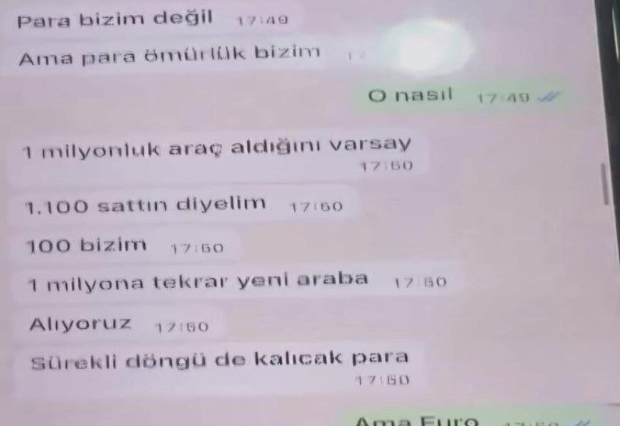 Öte yandan tutuklanan şüphelilerden Ömer Karacanın Whatsaptaki mesajları ortaya çıktı. Karaca mesajında, “100 bin euro daha gelebilir, toplamda 200 bin euro, 5 milyon para ile galericilik yapabilir miyiz yazdığı görüldü.