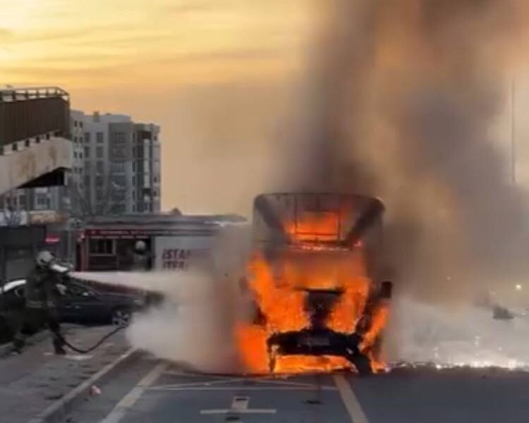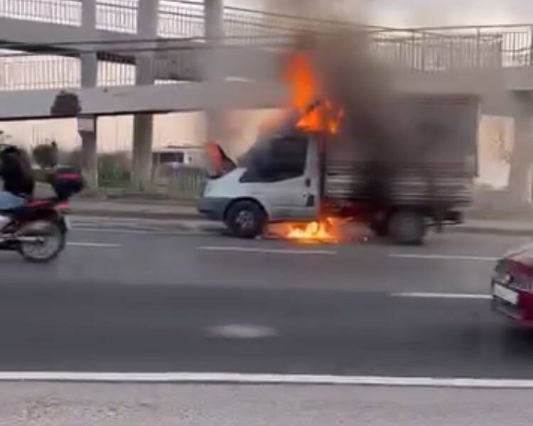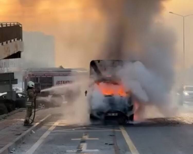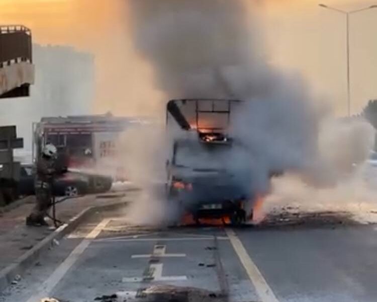 İstanbul- Büyükçekmece’de alev alev yanan kamyonet metal yığınına döndü