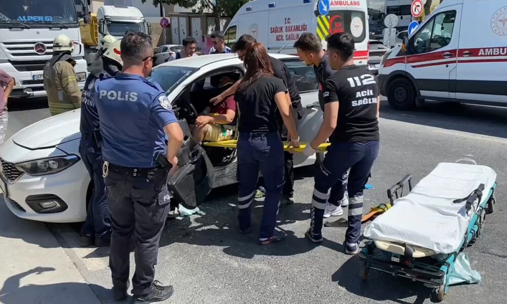 BÜYÜKÇEKMECE’de sokak arasından caddeye girmeye çalışan otomobile, cadde üzerinde gelen ambulansın çarpması ile kaza meydana geldi. Kazada otomobil içinde sıkan sürücü itfaiye ekiplerince kurtarılarak sağlık ekiplerine teslim ederken otomobil içinde bulun