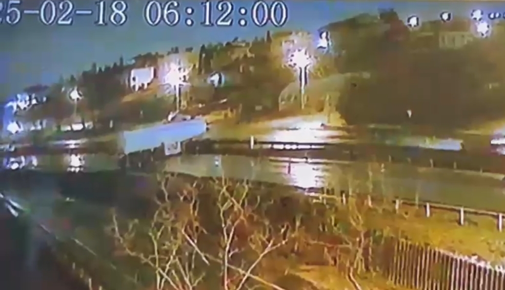 BÜYÜKÇEKMECE D-100 Karayolu'nda şoförünün direksiyon hakimiyetini kaybettiği TIR bariyerlere çarparak devrildi. Fotoğraf: İSTANBUL, (DHA)