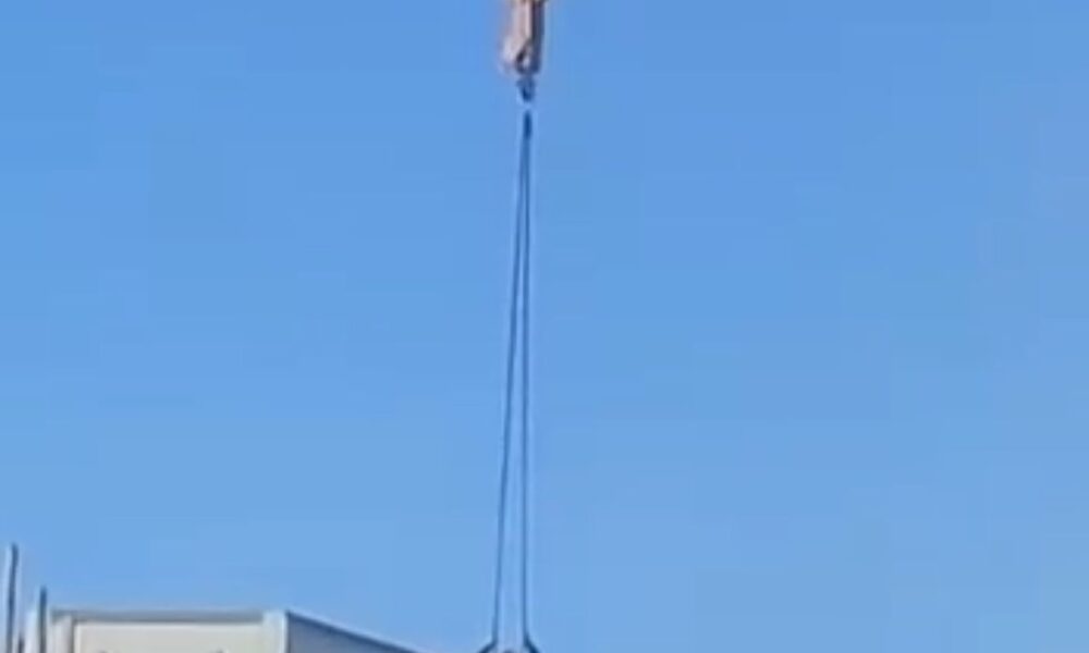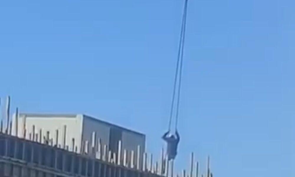 Büyükçekmece’de vincin halatına oturup yandaki inşaata geçti; o anlar kamerada