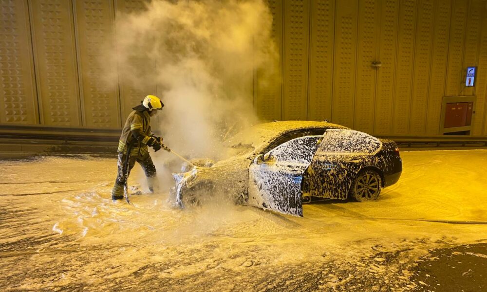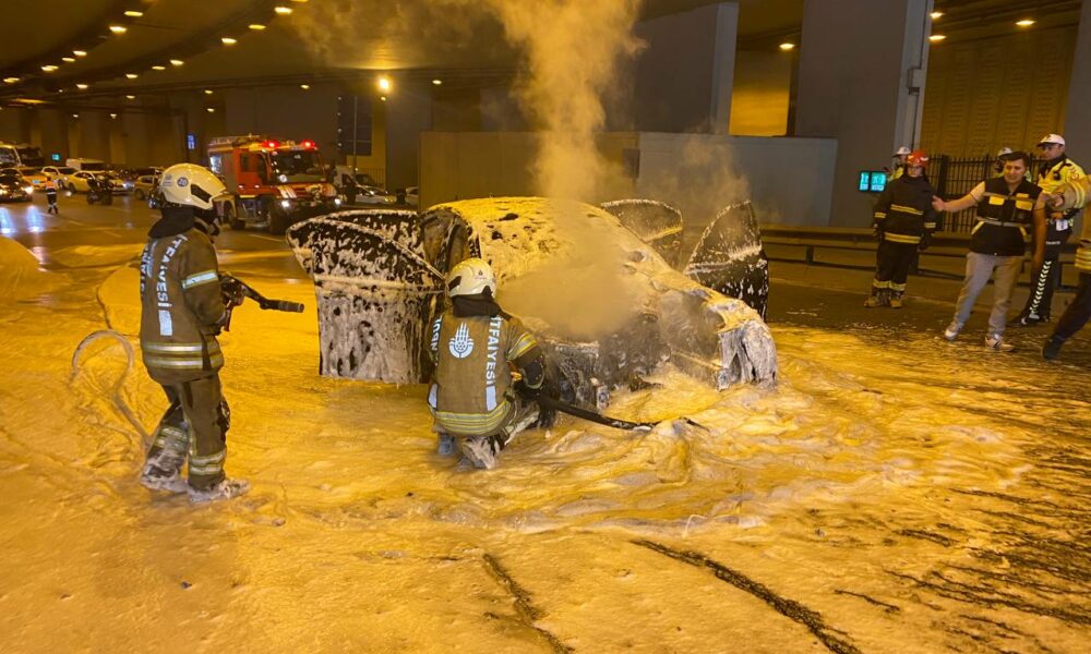 Çağlayan Tüneli’nde otomobil alev alev yandı