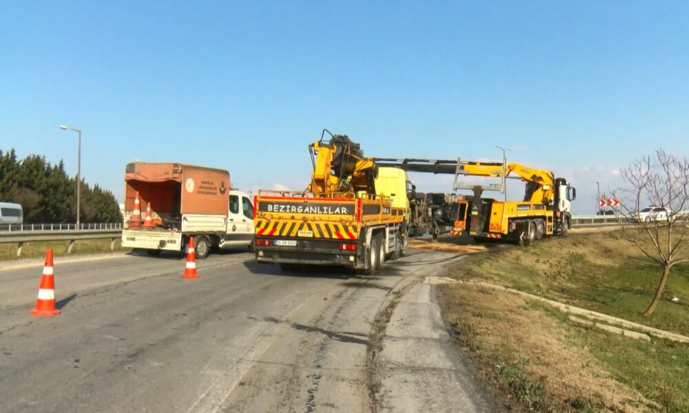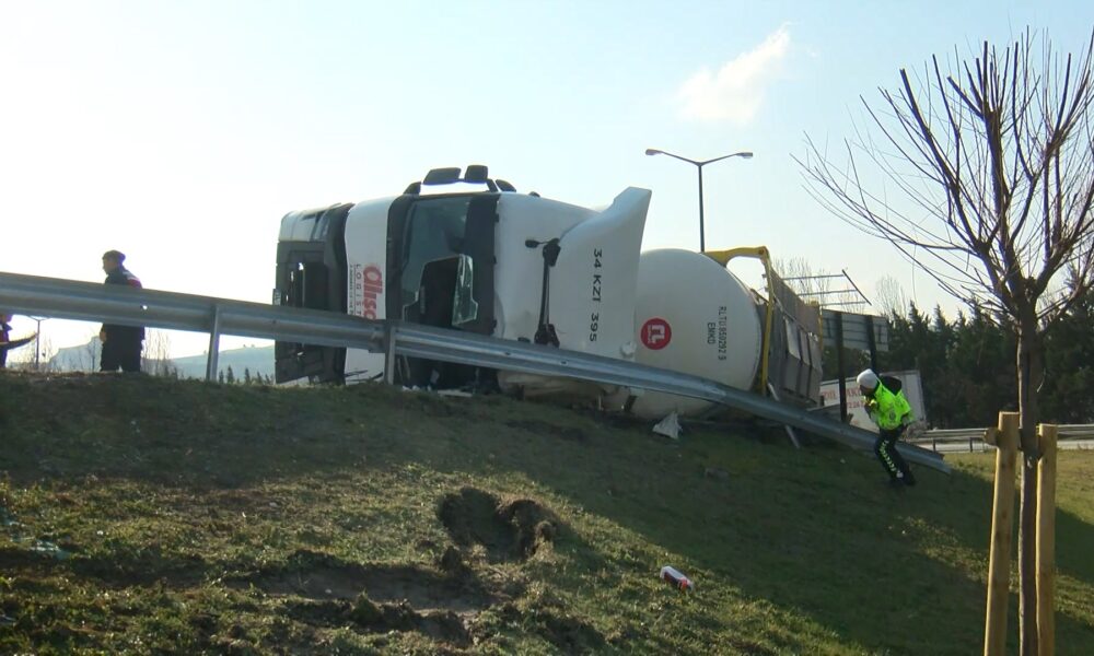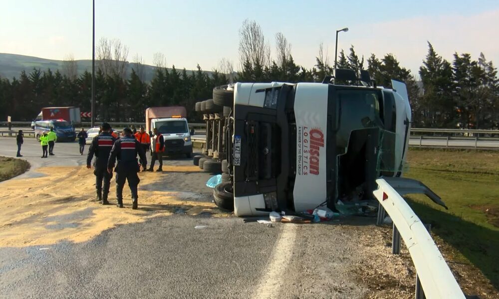 Çatalca TEM’de tanker devrildi