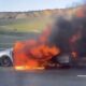 • Çatalca'da seyir halindeki otomobil alev alev yandı. Fotoğraf: Vehbi DEMİR/ İSTANBUL,(DHA)