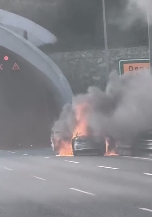 Yangın, saat 17.00 sıralarında Kuzey Marmara Otoyolu Kaleiçi Mevkiinde seyreden otomobilin motor kısmında çıktı. Henüz bilinmeyen bir nedenle araçtan çıkan dumanları gören sürücü otomobilini emniyet şeridine çekti. Alevler kısa sürede büyüyerek aracı sardı. Çevredekilerin ihbarı üzerine olay yerine itfaiye ve jandarma ekipleri geldi. Alevler itfaiye ekipleri tarafından söndürülürken, jandarma ise çevrede güvenlik önlemi aldı. Yangın nedeniyle hurdaya dönen otomobilin alev alev yandığı anlar diğer sürücüler tarafından cep telefonu ile kaydedildi.