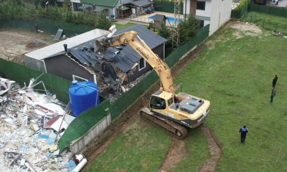 Cinayetin işlendiği villanın kaçak olduğunun belirlenmesi üzerine belediye ekipleri çalışma başlattı. Villada yapılan incelemelerin ardından yıkım kararı çıktı. Dün saat 10.30 sıralarında jandarma ve zabıta eşliğinde olay yerine gelen ekipler, yıkımı gerçekleştirdi. Ayrıca cinayetin işlendiği villanın yanında bulunan ve kaçak olduğu tespit edilen 3 villa daha yıkıldı.