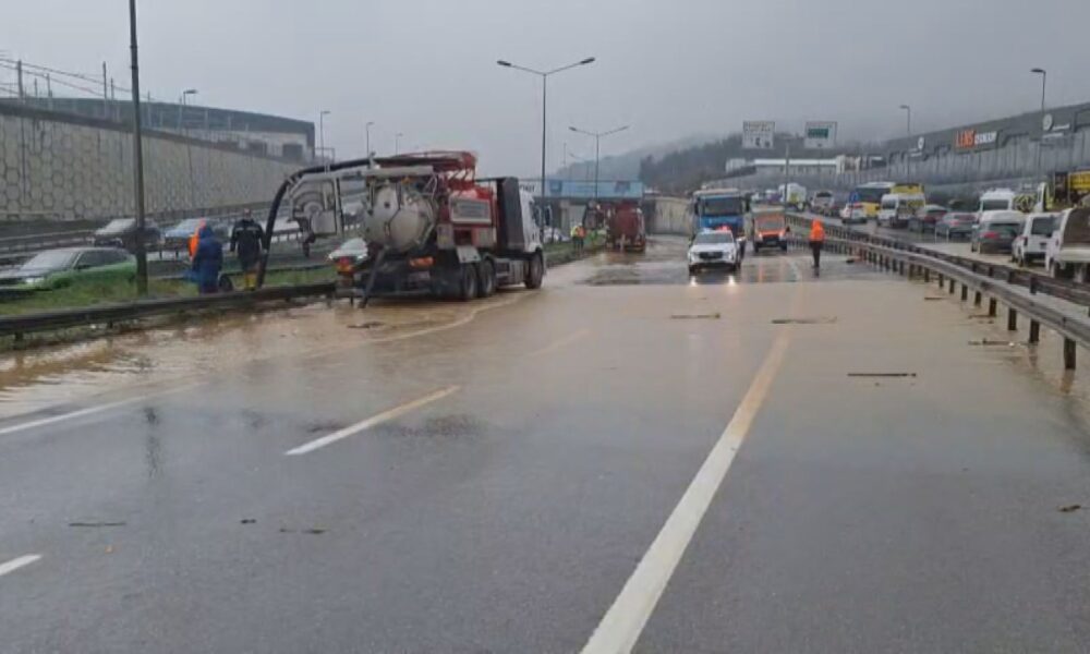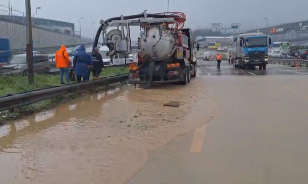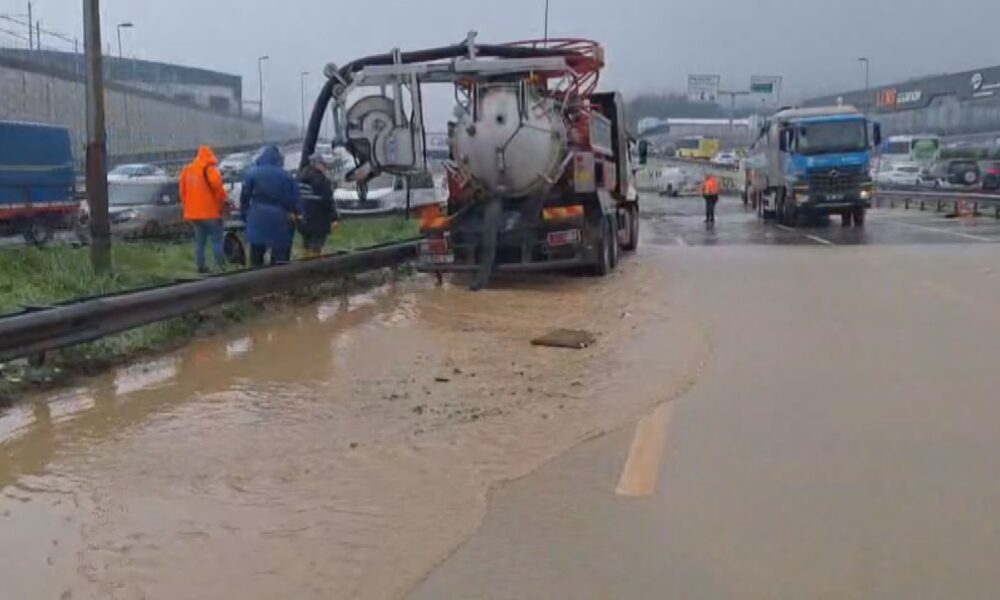 İstanbul – Çekmeköy’de dere yola taştı; Kadıköy istikameti trafiğe kapatıldı -1