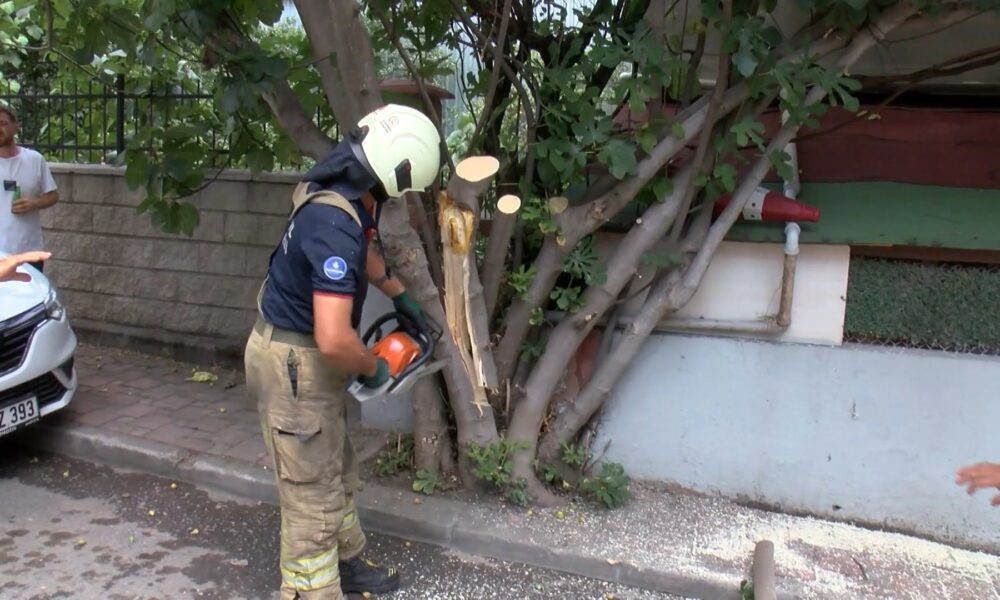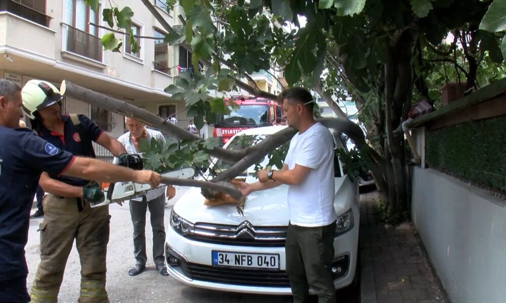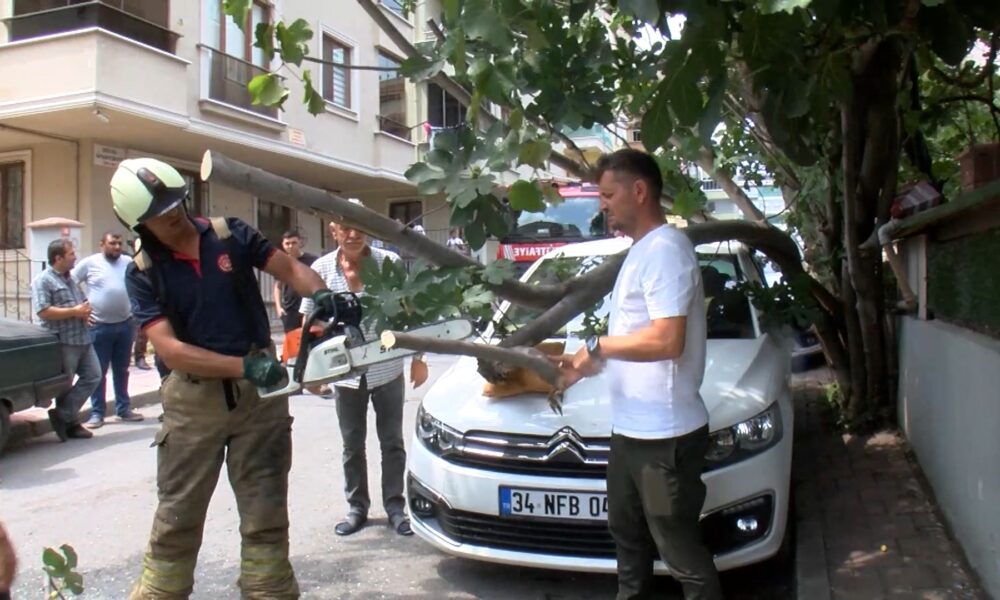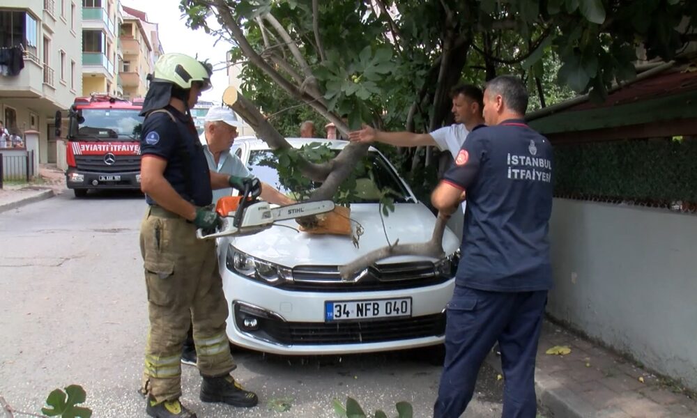 İstanbul – Çekmeköy’de kamyonetin çarptığı ağaç, park halindeki otomobilin üzerine devrildi