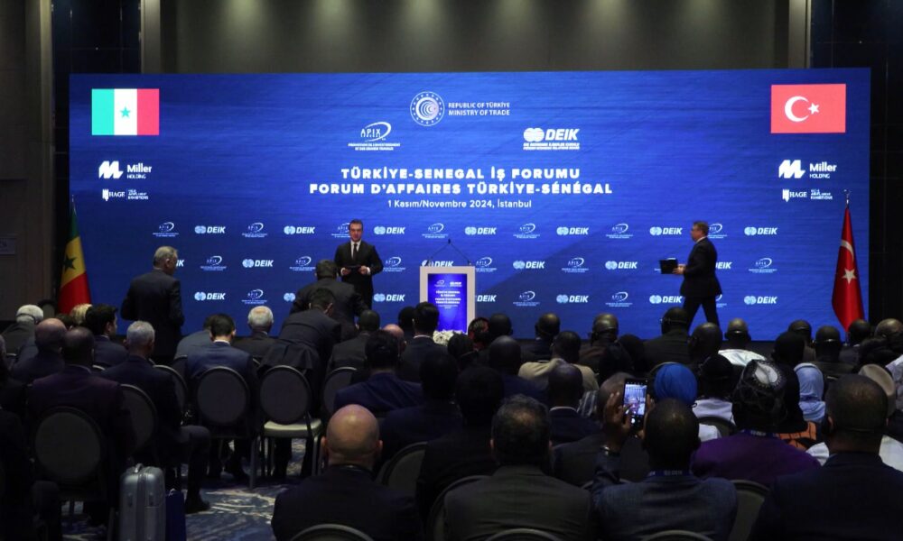 Türkiye-Senegal İş Forumu Senegal Cumhurbaşkanı Bassirou Diomaye Faye ve Cumhurbaşkanı Yardımcısı Cevdet Yılmazın katılımıyla Leventte düzenlendi. Programa ayrıca, Sanayi ve Teknoloji Bakanı Mehmet Fatih Kacır, Dış Ekonomik İlişkiler Kurulu (DEİK) Başkanı Nail Olpak, Senegal Ulusal İşverenler Konseyi (CNP) Başkanı Baidy Agne, Senegal Yatırım Ajansı (APIX) Başkanı Bakary Bathily ile Türk ve Senegalli iş insanları katıldı.