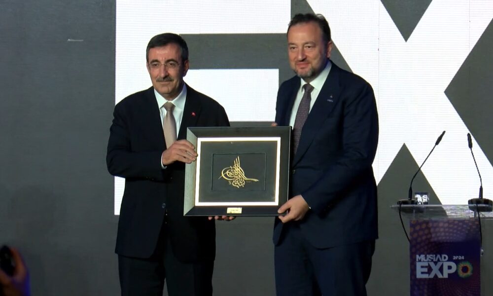Cumhurbaşkanı Yardımcısı Cevdet Yılmaz TÜYAP Fuar ve Kongre Merkezi’nde düzenlenen 20’nci MÜSİAD EXPO 2024 Uluslararası Ticaret Fuarı’na katıldı. Kuran-ı Kerim tilaveti ve MÜSİAD EXPO multivizyon fvideo gösterimiyle başlayan programda, Ticaret Bakanı Ömer Bolat ve MÜSİAD Genel Başkanı Mahmut Asmalı da bir konuşma yaptı. Programa Hazine ve Maliye Bakanı Mehmet Şimşek ile çok sayıda işinsanı da katıldı. Konuşmaların ardından Cumhurbaşkanı Yardımcısı Cevdet Yılmaza hediye takdim edildi.