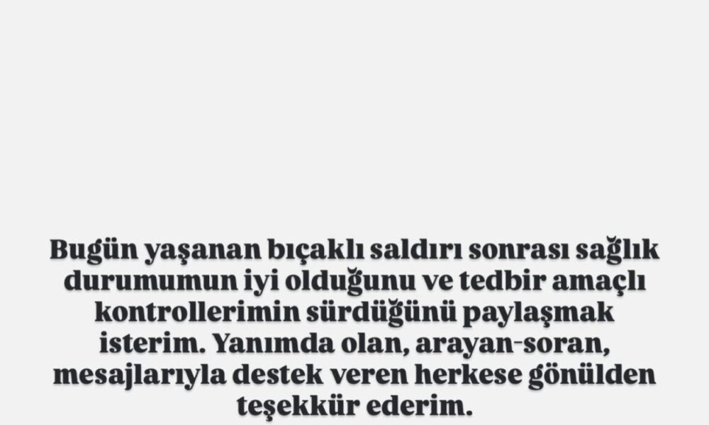 Öte yandan tedavisi süren Ahmet Tanay Garip, sanal medya hesabından yaptığı açıklamada, “Bugün yaşanan bıçaklı saldırı sonrası sağlık durumumun iyi olduğunu ve tedbir amaçlı kontrollerimin sürdüğünü paylaşmak isterim. Yanımda olan, arayan soran ve mesajlarıyla destek veren herkese gönülden teşekkür ederim.” ifadelerini kullandı.