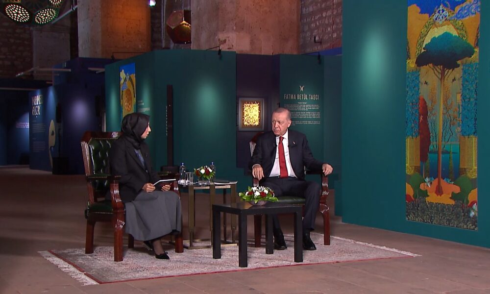 Sunucu Yasemin Karacanın, “Efendim siz hiç gençliğinizde sanatla ilgilendiniz mi? Geleneksel sanatlara ilgi duydunuz mu?” sorusuna ise Cumhurbaşkanı Erdoğan, “İlgilendim dersem doğrusu doğru olmaz, çünkü biz siyasetle ilgilendik” cevabını verdi. Bunun üzerine Karaca da, “O da Türkler için bir geleneksel sanat” dedi.