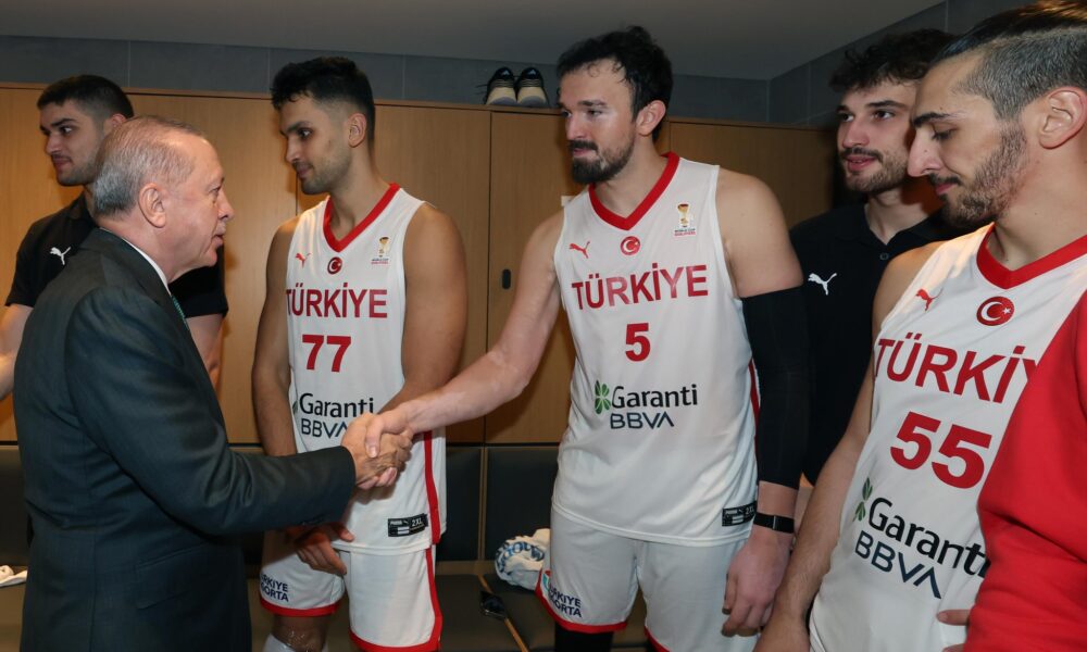 Cumhurbaşkanı Erdoğan, A Milli Basketbol Takımı’nı Dünya Kupası yolundaki ilk sınavında yalnız bırakmayarak, 2027 FIBA Dünya Kupası Elemeleri kapsamında Bosna Hersek ile oynadığı karşılaşmayı salonda takip etti. Turkcell Basketbol Gelişim Merkezi’nde oynanan mücadeleyi Cumhurbaşkanı Erdoğan’ın yanı sıra Gençlik ve Spor Bakanı Osman Aşkın Bak, AK Parti Genel Başkan Yardımcısı ve Parti Sözcüsü Ömer Çelik, AK Parti milletvekilleri Mehmet Muharrem Kasapoğlu, Mevlüt Çavuşoğlu ve Mustafa Varank, Cumhurbaşkanı Dış Politika ve Güvenlik Başdanışmanı Akif Çağatay Kılıç, İstanbul Valisi Davut Gül ile Türkiye Basketbol Federasyonu Başkanı Hidayet Türkoğlu ve yönetim kurulu üyeleri de izledi.