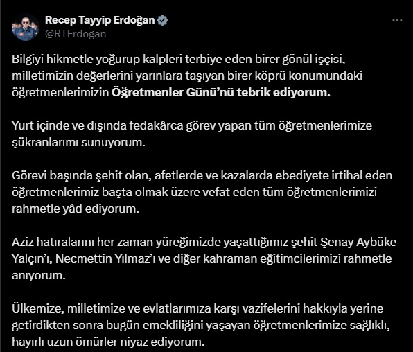 İstanbul -Cumhurbaşkanı Erdoğan’dan ‘Öğretmenler Günü’ paylaşımı