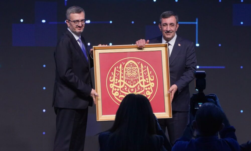 Yılmaz, “Cumhurbaşkanımızın Dünya 5ten büyüktür çağrısı tam da bu zeminde çok daha büyük bir anlam ifade etmektedir. Dünya 5ten büyüktür. Dünya kaos arayanlardan, çatışma, savaş arayanlardan da büyük. Dünyanın barışa ihtiyacı var, insanlığın barışa ihtiyacı var ve bunun temeli de adalettir. Daha adaletli bir dünya mümkündür. Biz buna inanıyoruz ve bu yönde çaba sarf etmeye tüm gücümüzle devam edeceğiz. Güçlüysem haklıyım, güçlüysem her istediğimi yapabilirim diyen bir dünyada Türkiye olarak biz karşı bir tavır sergiliyoruz ve şunu söylüyoruz: Hem haklı olacağız hem de güçlü olacağız. İkisini bir arada yapacağız. Ben şuna yürekten inanıyorum: Bugünkü güç siyaseti, Güçlüysem her şeyi yapabilirim anlayışı sürdürülebilir bir anlayış değildir. İnsanlık ve insanlık ittifakı buna müsaade etmez. Mutlaka ve mutlaka bir dip dalgayla bu ortamın değiştiğini, farklı şartların oluştuğunu göreceğiz. İşte Türkiye Cumhuriyeti olarak insanlığın değerlerini en güçlü şekilde taşıma iradesiyle, hafızamızla, medeniyet birikimimizle bu sürece liderlik eden ülkeler arasında olacağımıza inanıyorum” dedi. Konuşmalarının ardından İletişim Başkanı Burhanettin Duran, Cumhurbaşkanı Yardımcısı Cevdet Yılmaz’a hediye taktiminde bulundu.