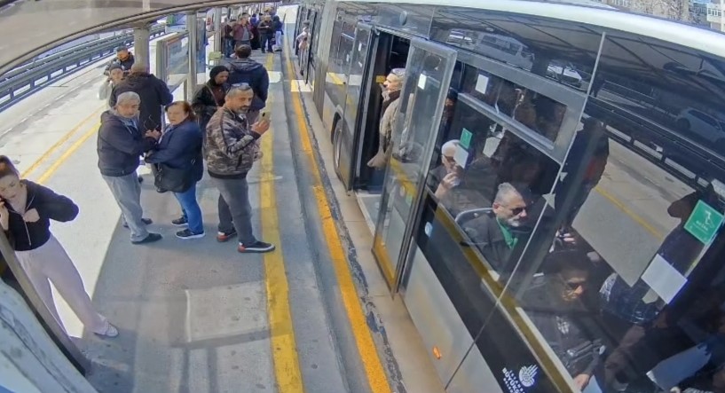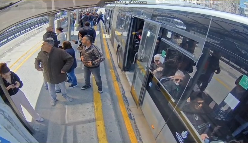İstanbul'da hissedilen 6,2 büyüklüğünde meydana gelen depreme metrobüs durağında yakalananlar güvenlik kameralarına yansıdı. (DHA)