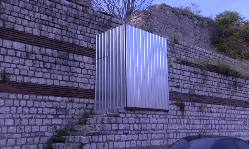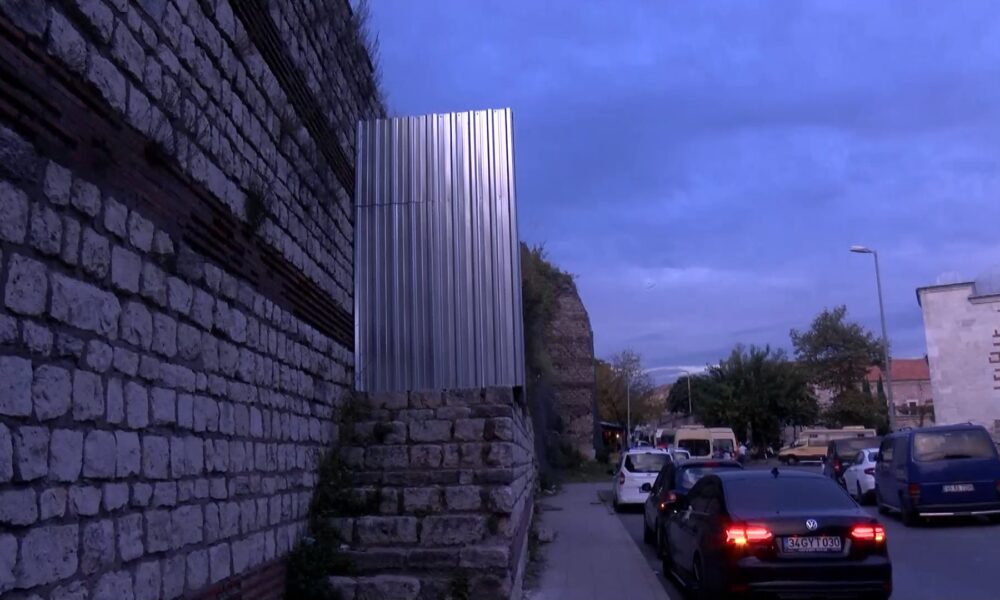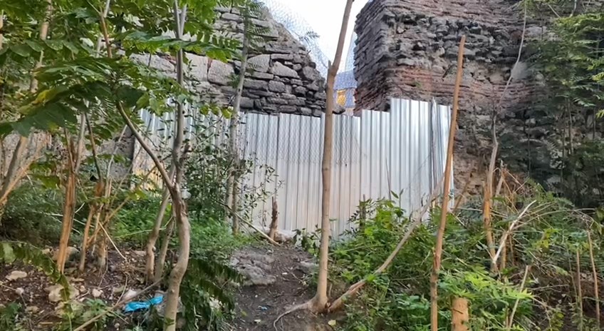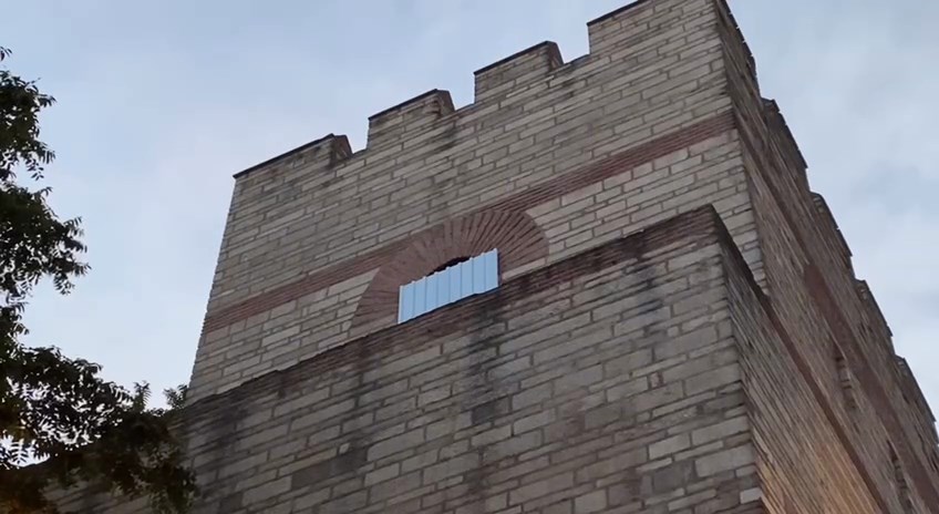 FATİH'te Semih Çelik'in İkbal Uzuner'i öldürerek Edirnekapı Surları'ndan atlayarak intihar etmesinin ardından, surlara çıkan merdivenler belediye ekipleri tarafından saclarla kapatıldı. Fotoğraf: İstanbul, (DHA)