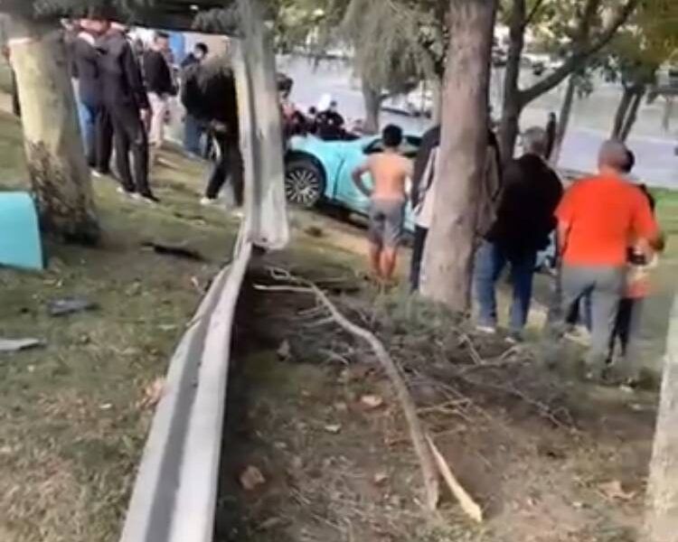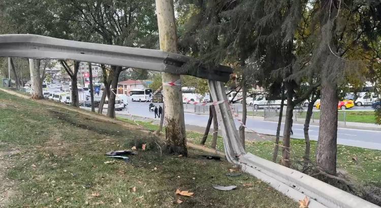 İstanbul- Esenler’de bariyeri aşan otomobil ağaca çarptı