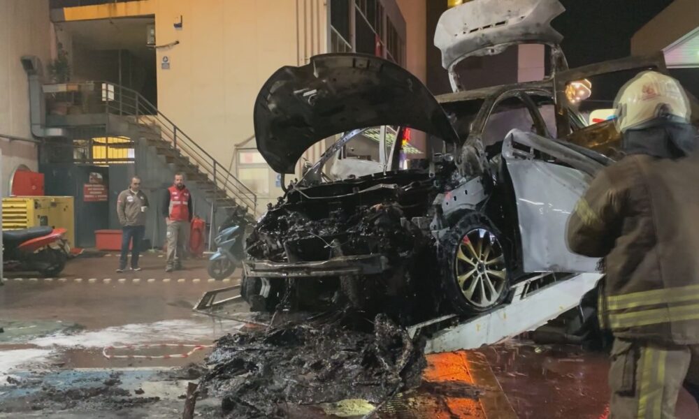 Kısa bir süre sonra şarj olan otomobilde bilinmeyen nedenle patlama meydana geldi. Patlamanın ardından otomobil alev alev yandı. Çevredekilerin ihbarı üzerine adrese itfaiye, acil sağlık ve polis ekipleri geldi. Alevler itfaiye ekiplerinin müdahalesiyle söndürüldü. Sağlık ekiplerinin kontrollerinde yangında yaralanan kimsenin olmadığı belirlendi. Kullanılamaz hale gelen otomobil, çekici yardımıyla bulunduğu yerden kaldırıldı. Yangının çıkış nedenine ilişkin inceleme başlatıldı.