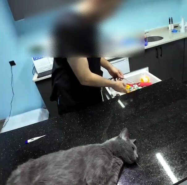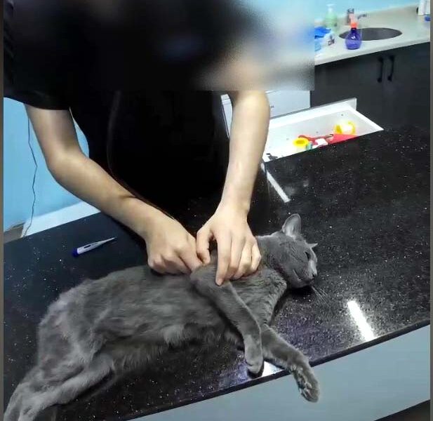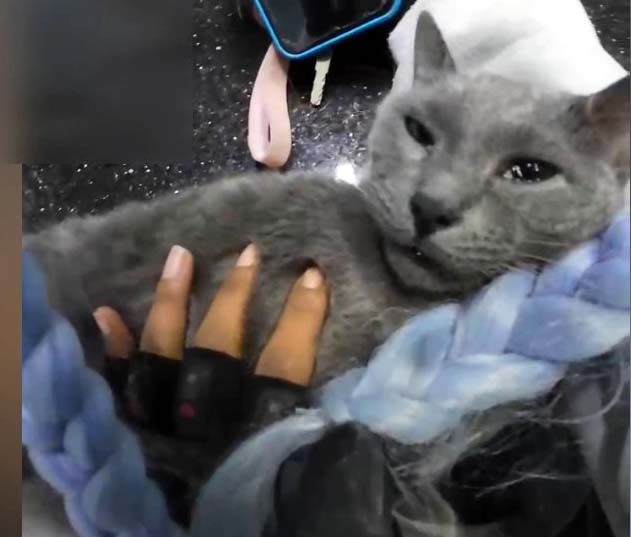 Veteriner kalbi duran kediye dakikalarca kalp masajı yaptı; ancak kalp masajına cevap vermeyen kedi yaşama döndürülemedi. Motokuryenin kediyi sahibinden alıp veterine götürmesi, veterinerin kediye müdahalesi, kadın morokuryenin kalbi duran kediyi kurtarma çabası kask kamerasına saniye saniye yansıdı.