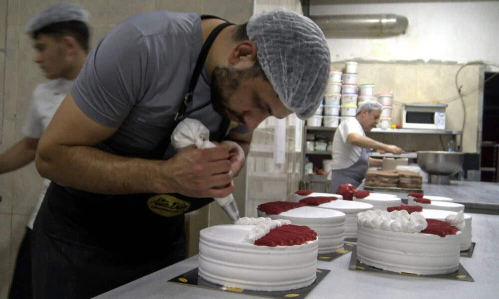 Celal Koç, 40 çeyrek cumhuriyet altınlı yaş pastaların ilgi gördüğünü söyledi. (Fotoğraf:İhsan DÖRTKARDEŞ/İSTANBUL-DHA)