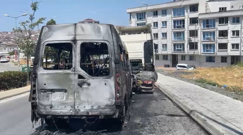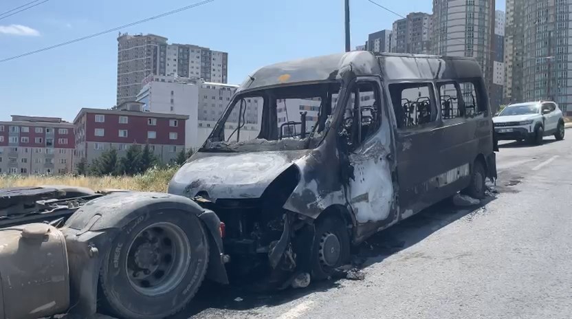İstanbul- Esenyurt’ta servis minibüsü alev alev yandı