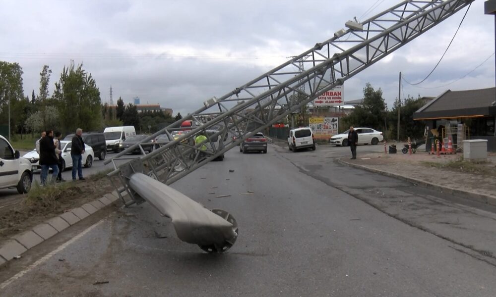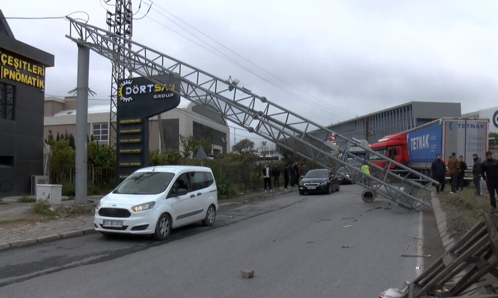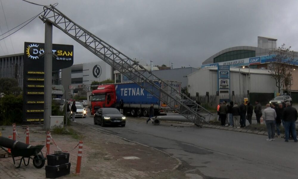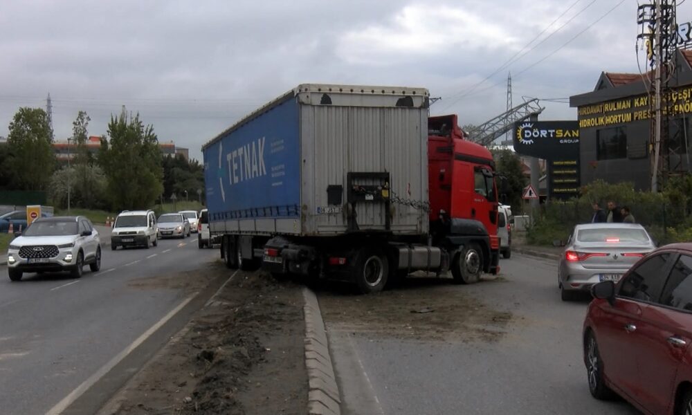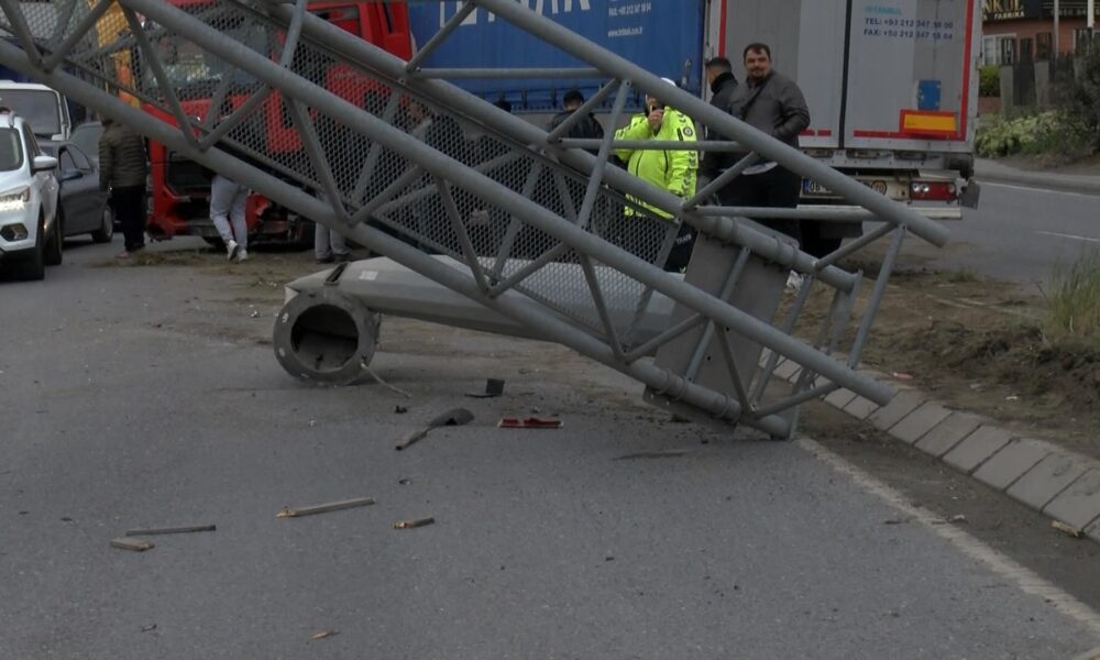 İstanbul – Esenyurt’ta sürücüsünün direksiyon hakimiyetini kaybettiği TIR, refüjdeki PTS direğini devirdi