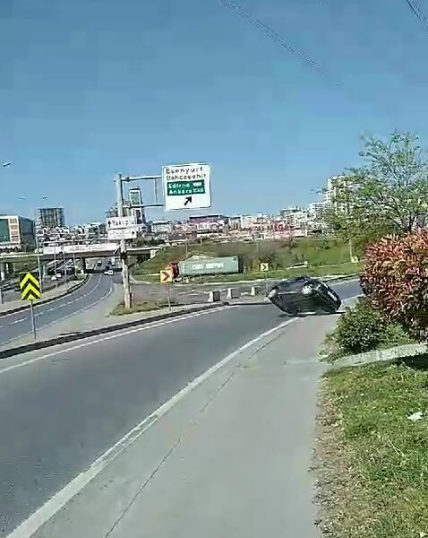 Esenyurt’ta sürücüsünün hakimiyetini kaybettiği otomobil devrildi