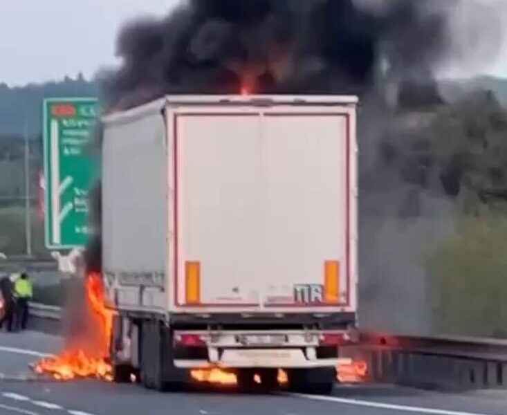 İstanbul – Eyüpsultan Kuzey Marmara Otoyolu’nda TIR alev alev yandı