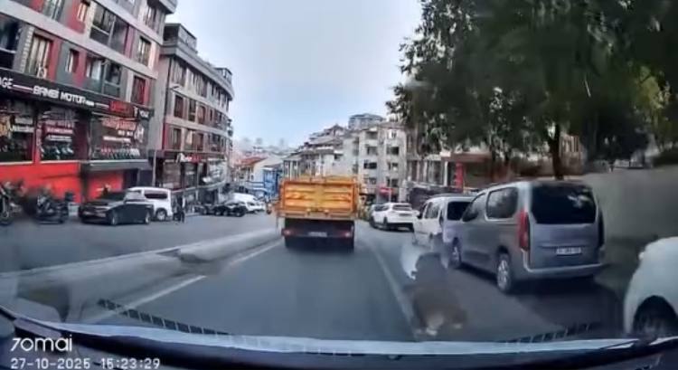 İstanbul – Eyüpsultan’da otomobil ‘U’ dönüşü sırasında kamyonetle çarpıştı; kaza anı kamerada