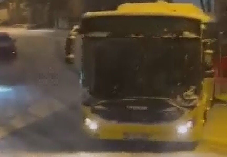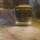 İstanbul – Eyüpsultan’da yokuştan inen İETT otobüsü kar nedeniyle kaydı