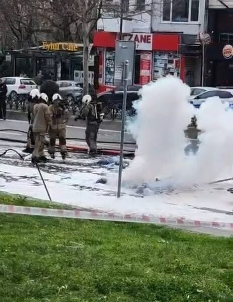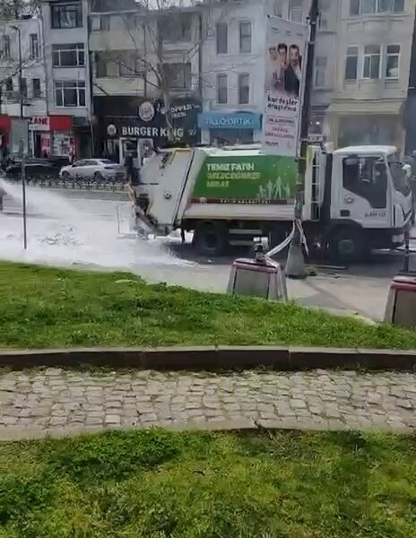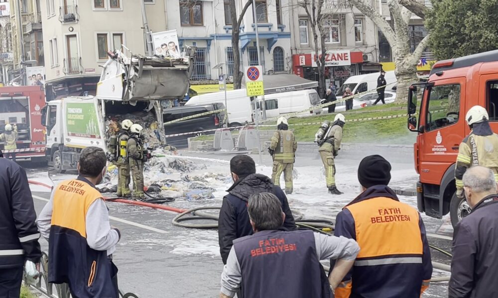 Fatih'te çöp kamyonunda henüz bilinmeyen nedenle patlama meydana geldi. (DHA)