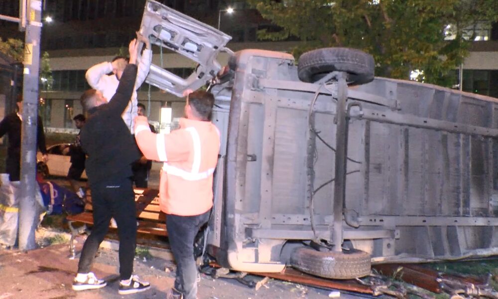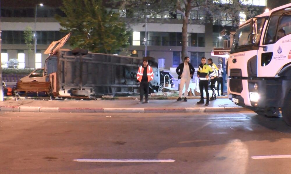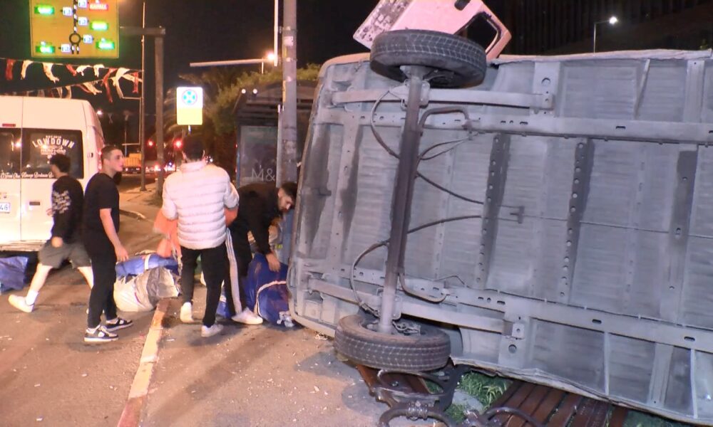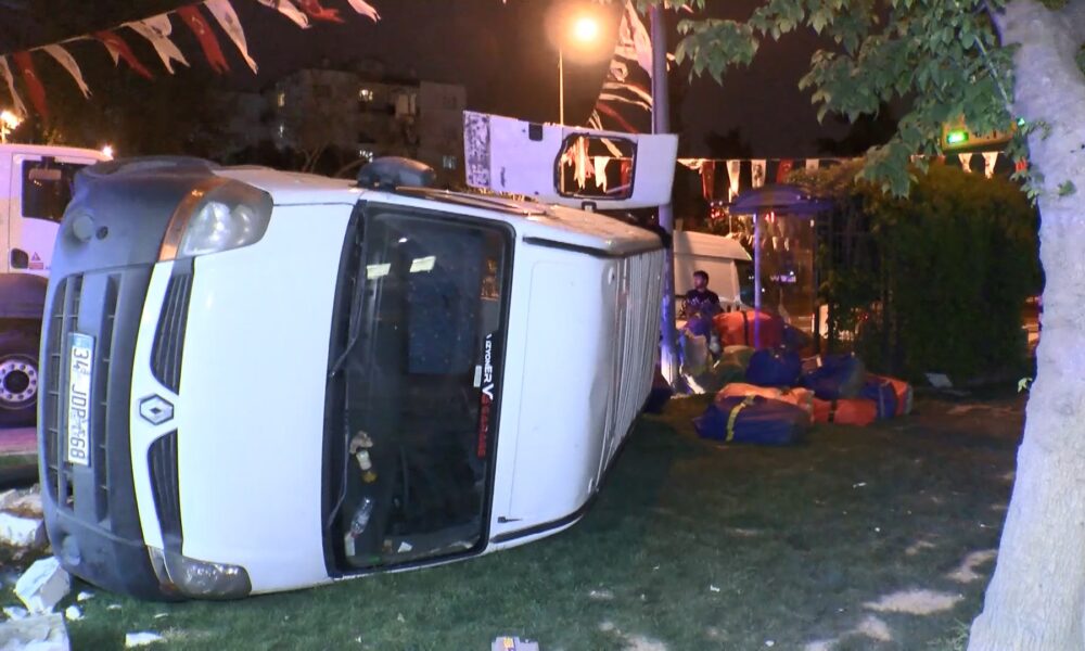 İstanbul – Fatih’te kaldırıma çıkan minibüs devrildi