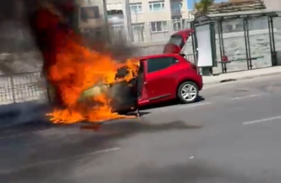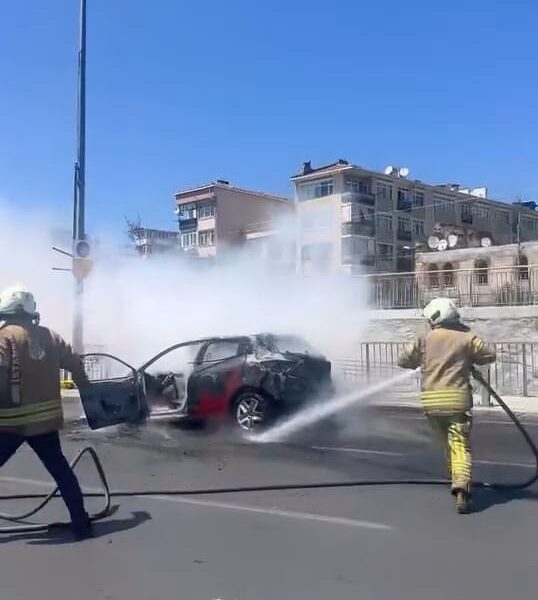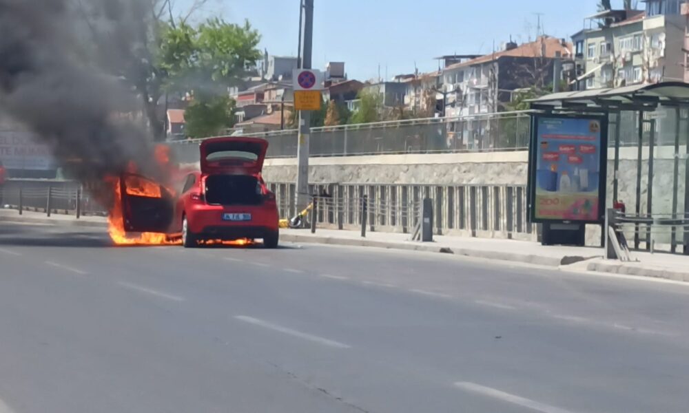 İstanbul- Fatih’te seyir halindeki otomobil alev alev yandı
