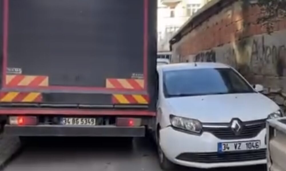 İstanbul – Fatih’te sokaktan geçemeyen kamyon park halindeki araçlara çarparak yoluna devam etti