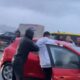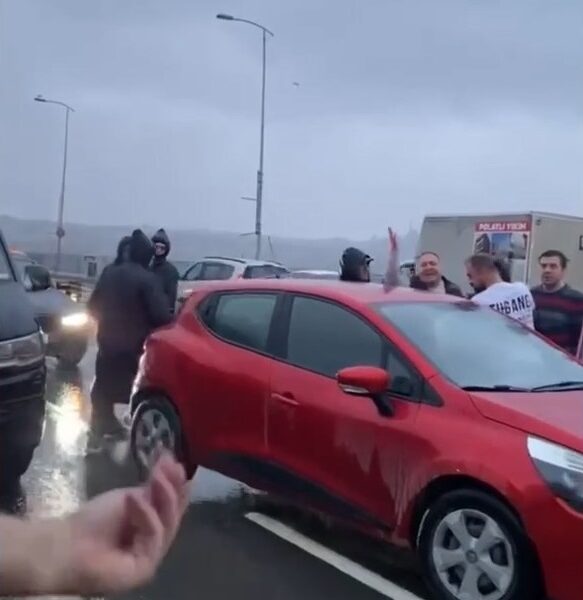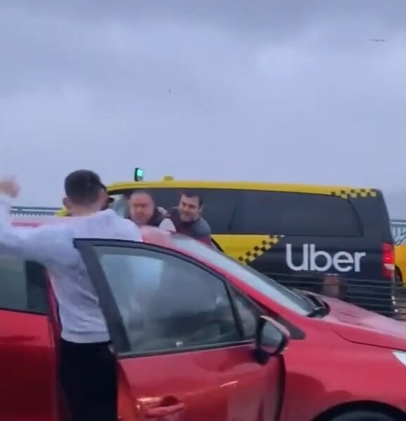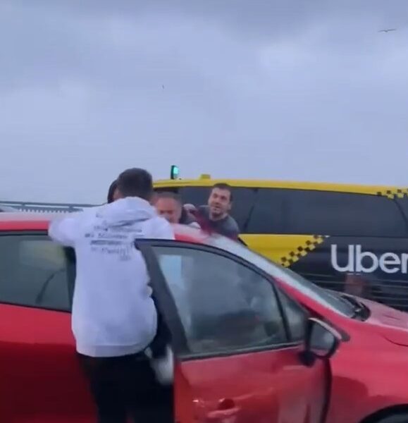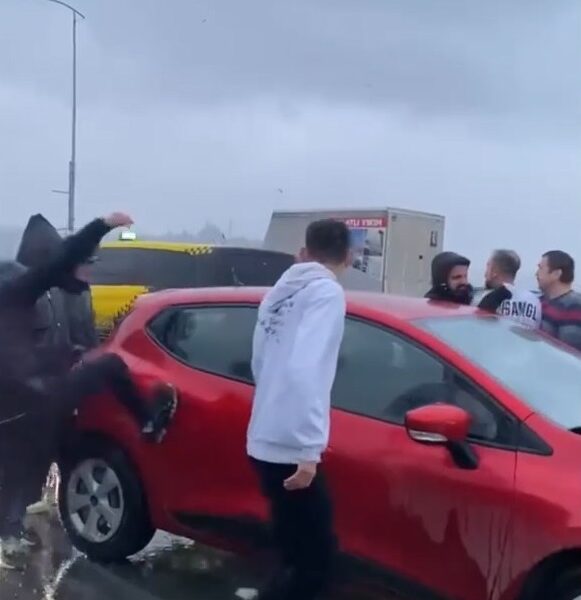 İddiaya göre, Unkapanı Köprüsü’nde seyir halinde olan 2 otomobilin sürücüsü arasında yol verme nedeniyle tartışma çıktı. Araçlarını durduran sürücüler arasındaki tartışma kısa sürede kavgaya dönüştü. Sürücülerden biri diğer aracın kapısını açıp, tartıştığı sürücüye tekme atttı. Saldırgan sürücünün yanındaki başka bir kişi ise otomobili tekmeledi. Vatandaşların araya girmesiyle kavga sona erdi.