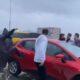 Sürücüler arasında yol verme nedeniyle çıkan kavga anları bir vatandaşın cep telefonu kamerasına yansıdı. Görüntülerde sürücüler arasında yaşanan tartışmanın kavgaya döndüğü anlar görülüyor.Çevredekilerin araya girmesiyle kavga sona eriyor.
