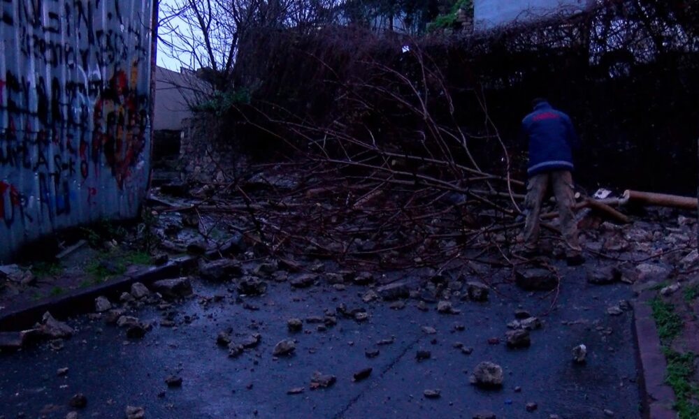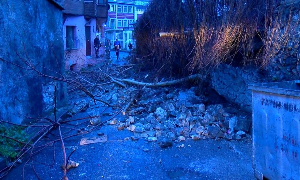 İstanbul – Fatih’te yağışın ardından istinat duvarı çöktü; sokak kapatıldı