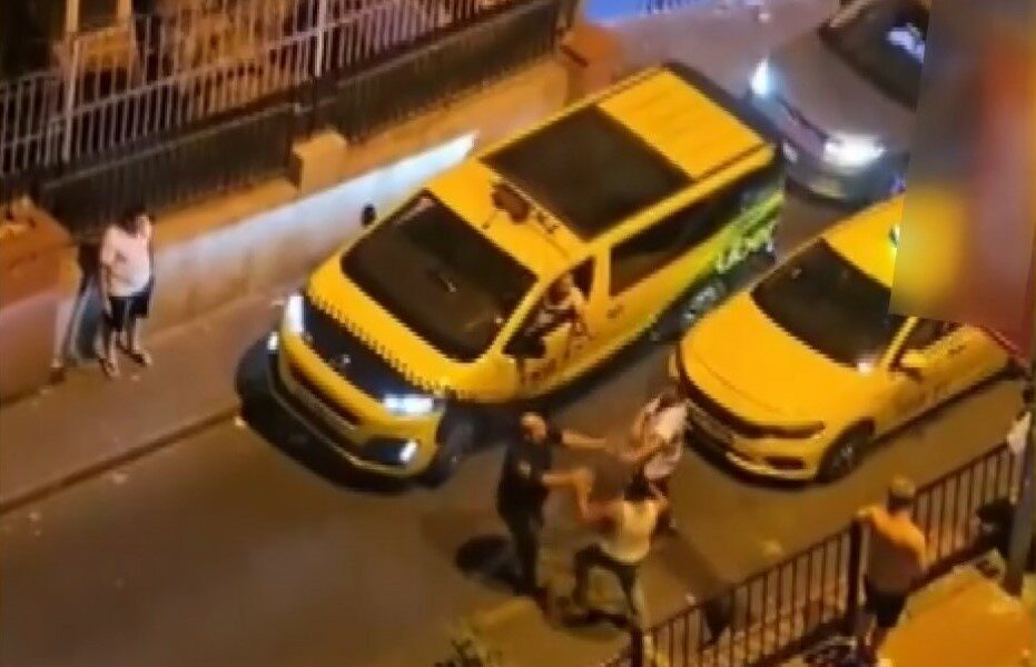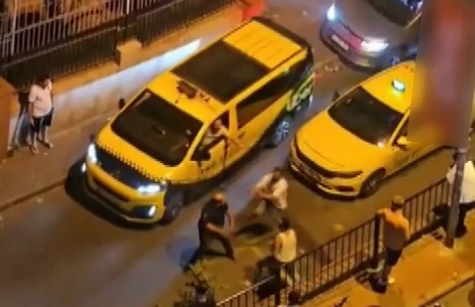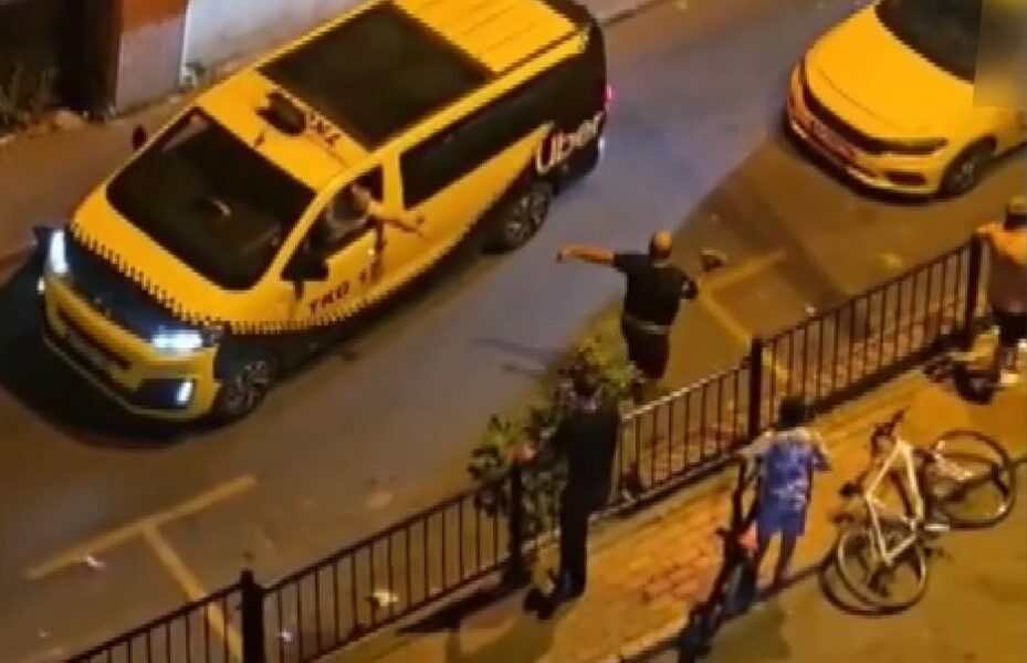 FATİH'te taksi şoförüyle otomobil sürücüsü arasında yol verme tartışması yaşandı. Tartışma kısa sürede kavgaya dönüşürken otomobilden inen 3 kişi taksi şoförünü öldüresiye dövdü. O anlar cep telefonu kamerasına yansıdı. (FOTOĞRAF: AHMET YEŞİLMEN / İSTANBU