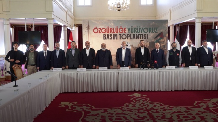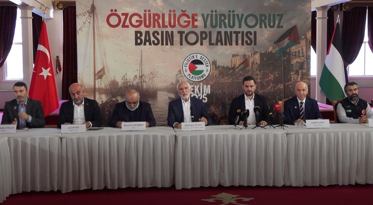 Filistine Destek Platformu tarafından Özgürlüğe Yürüyoruz çağrısıyla Filistinin özgürlüğü ve Sumud Filosuna destek için 5 Ekim Pazar günü gerçekleştirilecek olan yürüyüş öncesi basın toplantısı gerçekleştirildi. Eyüp Sultan Bahariye Mevlevihanesinde gerçekleştirilen programa Filistine Destek Platformu Başkanı Mehmet Güney, İnsan ve Medeniyet Hareketi Yönetim Kurulu Başkanı Kemal Özden, İnsan Hak ve Hürriyetleri (İHH) Vakfı Genel Başkanı Bülent Yıldırım, İslam Ülkeleri Akademisyenler ve Yazarlar Birliği Genel Başkanı Ebubekir Ceylan, İstanbul 2 nolu Baro Başkanı Yasin Şamlı, HAK-İŞ İstanbul İl Başkanı Mustafa İluk, TÜGVA Teşkilat Koordinatörü Zafer Karamağara, Memur-Sen Genel Başkan Yardımcısı Ali Deniz katıldı. Yürüyüş Ayasofya Camiinden Eminönü Meydanına 5 Ekim Pazar günü, Özgürlüğe Yürüyoruz temasıyla, Aksa Tufanının yıl dönümünde Filistinin özgürlüğü ve Sumud Filosuna destek için düzenlenecek.