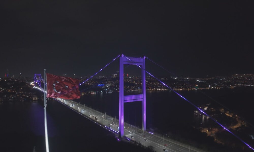 İstanbul – FSM Köprüsü ‘Dünya Prematüre Günü’ kapsamında mor ışıklarla aydınlatıldı