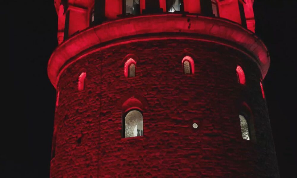 İstanbul – Galata Kulesi ‘Multipl Miyelom’ hastalığına farkındalık kapsamında kırmızı ışıklarla aydınlatıldı