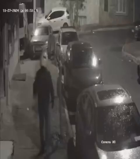 Olay, 27 Kasım Çarşamba günü gece saat 01.50 sıralarında Fevzi Çakmak Mahallesinde meydana geldi. İddiaya göre, bir kişi yaşadığı binanın önüne park edilen otomobile tekme atarak zarar verdi. Ardından evine çıkan şüpheli bir süre sonra tekrar aşağı inerek araca zarar vermeye çalışınca yakınları engel oldu. O anlar binanın güvenlik kamerasına saniye saniye yansıdı.