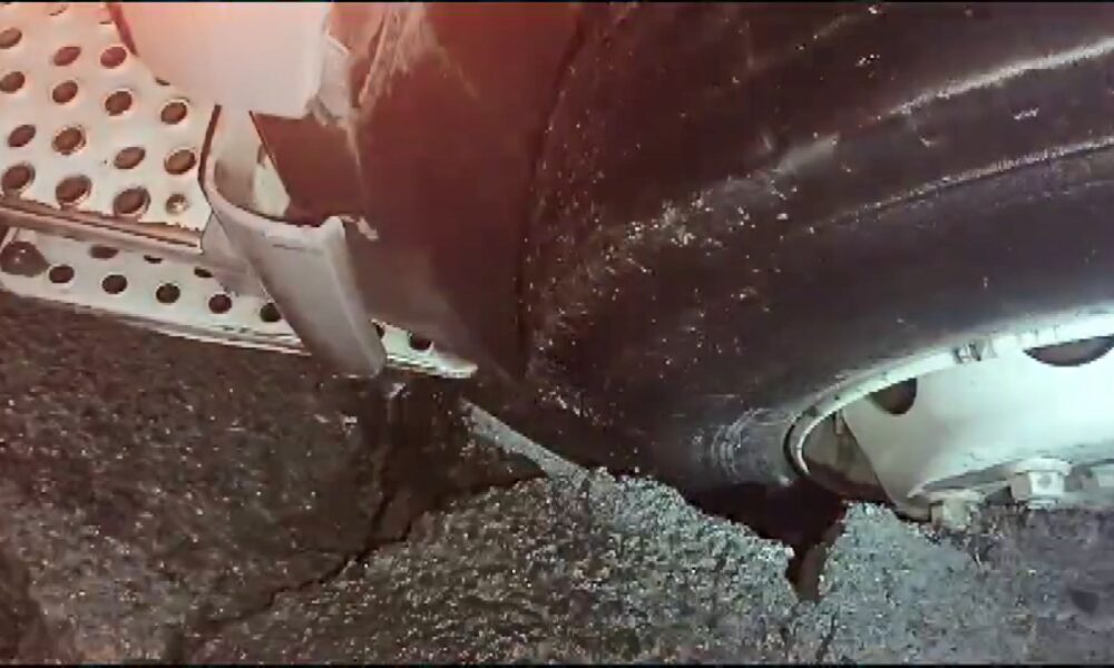 OLAY YERİNE GELEN İTFAİYE ARACI ÇÖKEN ASFALTA DÜŞTÜ