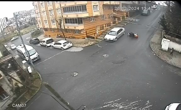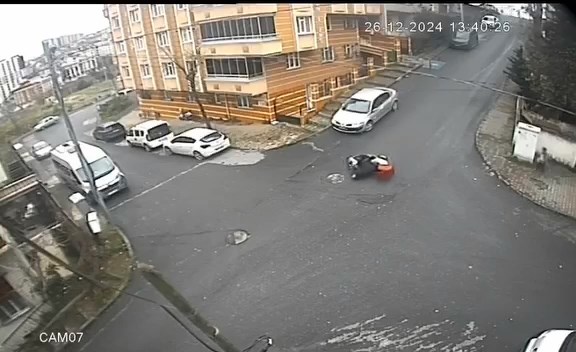 Kaza, 26 Aralık Perşembe günü saat 13.40 sıralarında Karayolları Mahallesinde meydana geldi. Yağışlı havanın etkisiyle kayganlaşan yolda ilerleyen motosikletli kurye, sokak girişinde yavaşlamak için fren kullandı. Bu sırada kayarak devrilen motosiklet metrelerce sürüklendi. Kazayı görenler motokuryenin yardımına koştu. Motokurye haber verilmesi üzerine olay yerine gelen sağlık ekipleri tarafından ambulansla hastaneye kaldırıldı. Kaza anı çevrede bulunan güvenlik kamerasıyla kaydedildi.