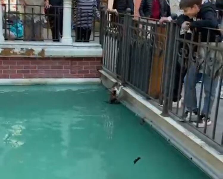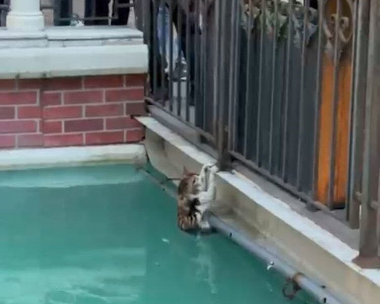 Olay, öğle saatlerinde Karadeniz Mahallesindeki bir alışveriş merkezinde meydana geldi. Alışveriş merkezinde bulunan süs havuzuna düşen kedi çıkmakta zorluk yaşadı. Gezerken durumu farkeden kişiler havuzun kenarında bulunan demir korkuluklara tutunarak mahsur kalan kediyi kurtardı. O anlar cep telefonu kamerasıyla kaydedildi.
