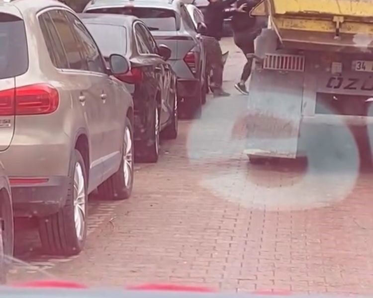 Olay, öğle saatlerinde Merterde meydana geldi. İddiaya göre, caddede seyreden 34 AR 0428 plakalı hafriyat kamyonu ile otomobil çarpıştı. Kazanın ardından otomobil sürücüsü ile hafriyat kamyonunun şoförü arasında çıkan tartışma kısa sürede büyüyerek bıçaklı kavgaya dönüştü. Bunun üzerine otomobil sürücüsü aracından aldığı bıçakla kamyon şoförüne saldırmaya başladı. Bu sırada hafriyat kamyonunun şoförü ise otomobil sürücüsüne sopayla saldırarak karşılık verdi. Kavga çevredeki kişilerin araya girmesiyle son bulurken, yaşananlar başka bir sürücü tarafından cep telefonu ile kaydedildi.