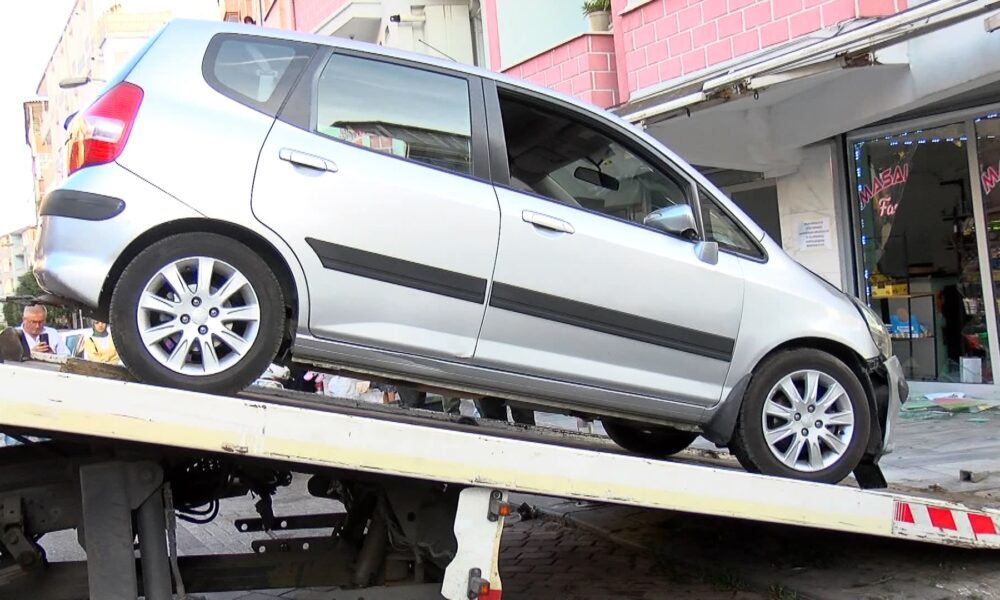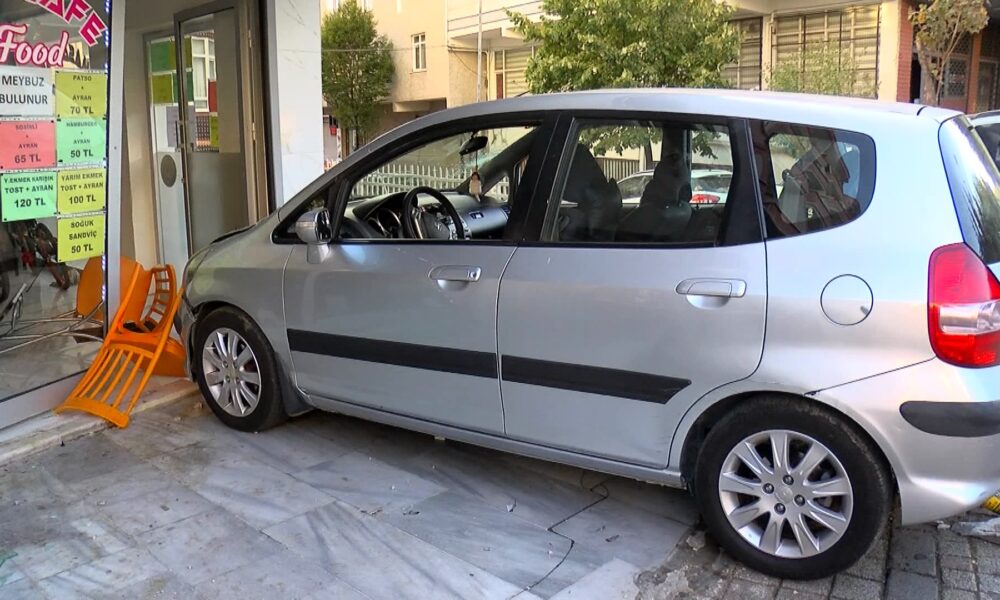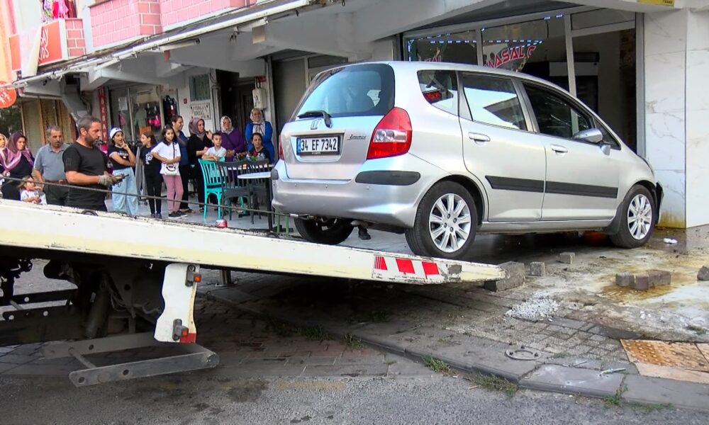 İstanbul – Güngören’de yayaya çarpan otomobil aydınlatma direği ve iş yerinin duvarına çarparak durdu