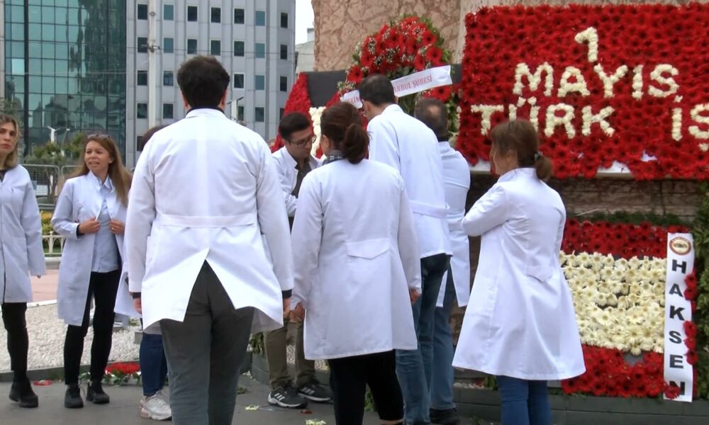 Hekim Birliği Sendikası Taksim Cumhuriyet Anıtı’na çelenk bıraktı