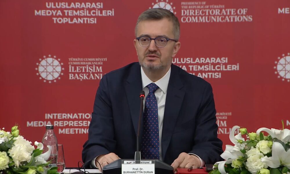 İletişim Başkanı Burhanettin Duran, uluslararası medya temsilcileriyle İstanbulda bir araya geldi. İletişim Başkanı Duran burada ki konuşmalarının ardından basın mensuplarıyla soru cevap gerçekleştirdi.